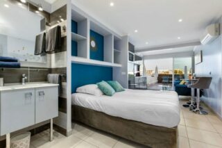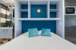 L’appartement Easy Love de 28m² est un appartement haut de gamme pour les couples recherchant un lieu de vie moderne et situé au cœur de l’activité bouillonnante du village. Très fonctionnel, cette location embellira votre séjour.Avec son agencement très bien pensé, l’appartement vous propose un grand lit en 160 entouré d’un éclairage à régler à votre convenance (intensité et leds de couleurs), une salle de bain avec une douche, une cuisine toute équipée, un séjour avec un canapé, une grande penderie, climatisation réversible et le wifi gratuit. Egalement une grande terrasse de 20m² propice aux rencontres.